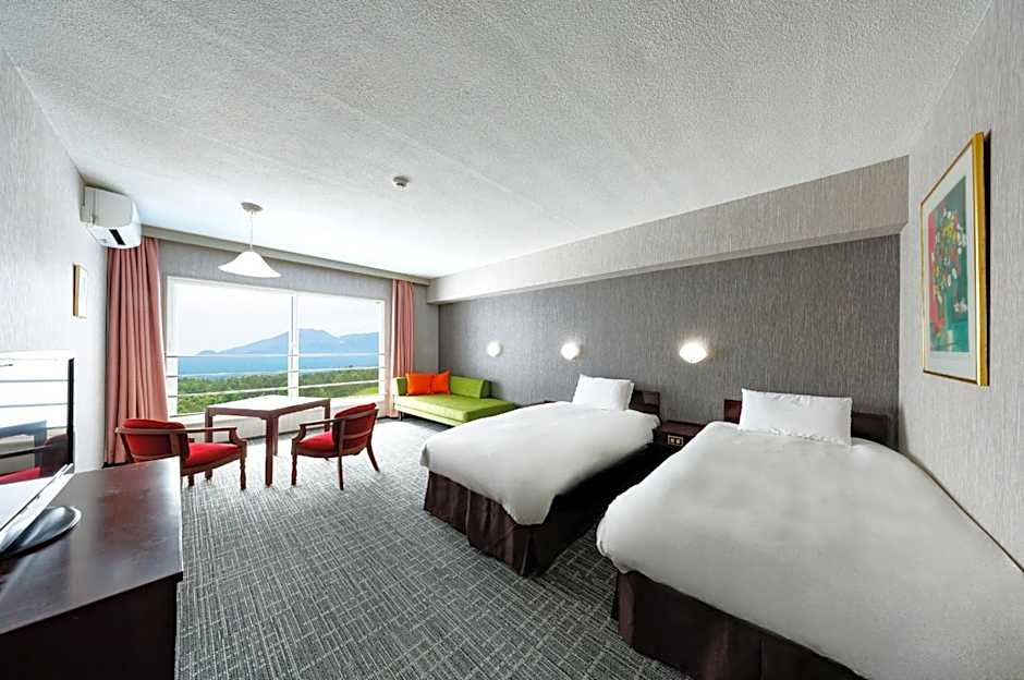 The spacious air-conditioned twin room features a flat-screen TV, an electric kettle, a sofa, a carpeted floor as well as mountain views. The unit has 3 beds.