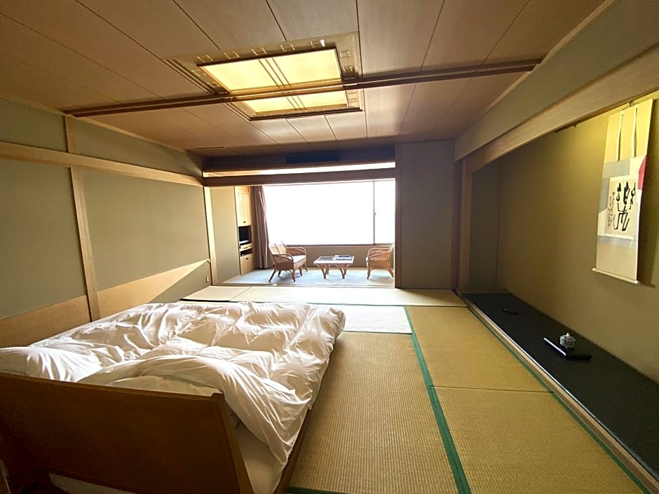 The family room includes a private bathroom, well-fitted with a bath, a shower, a bidet, a hairdryer and slippers. The spacious air-conditioned family room offers a flat-screen TV, tatami, a tea and coffee maker, a seating area as well as sea views.