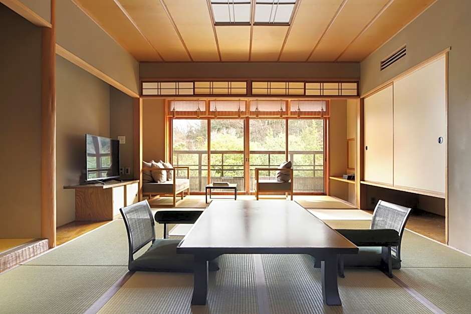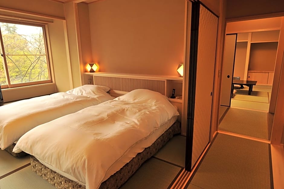 This spacious suite consists of 1 living room, 1 separate bedroom and 1 bathroom with a bath and free toiletries. The air-conditioned suite provides a flat-screen TV with streaming services, tatami, a mini-bar, a seating area as well as garden views. The unit offers 5 futons.
