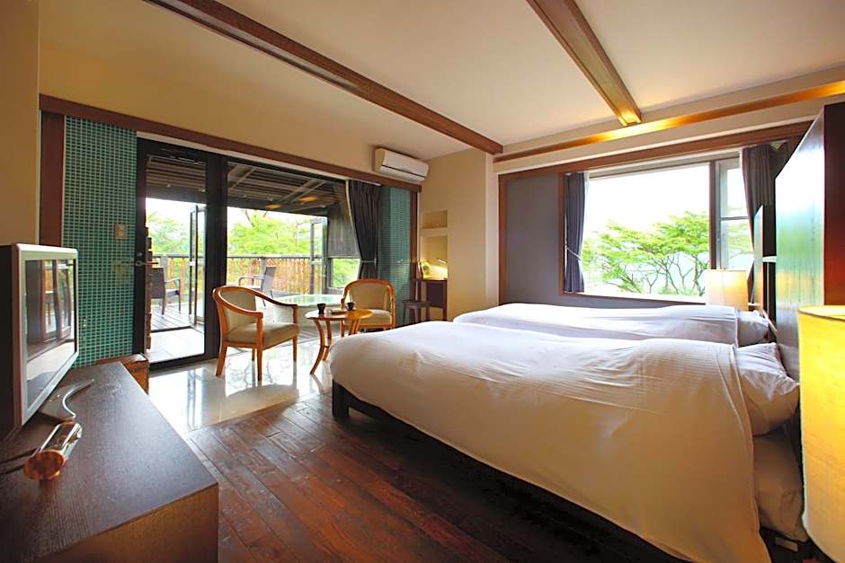 Guests will have a special experience as the twin room offers a private open-air bath. The spacious twin room provides air conditioning, a seating area, a balcony with mountain views as well as a private bathroom featuring a bath. The unit offers 2 beds.