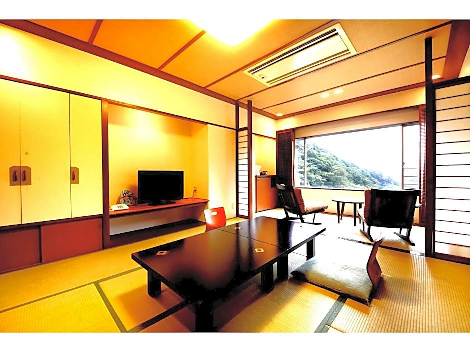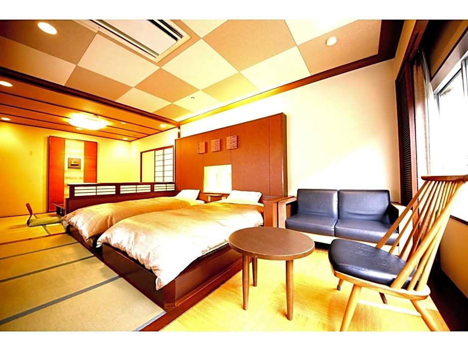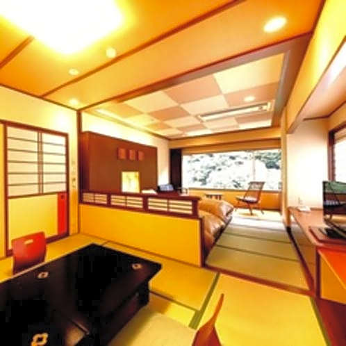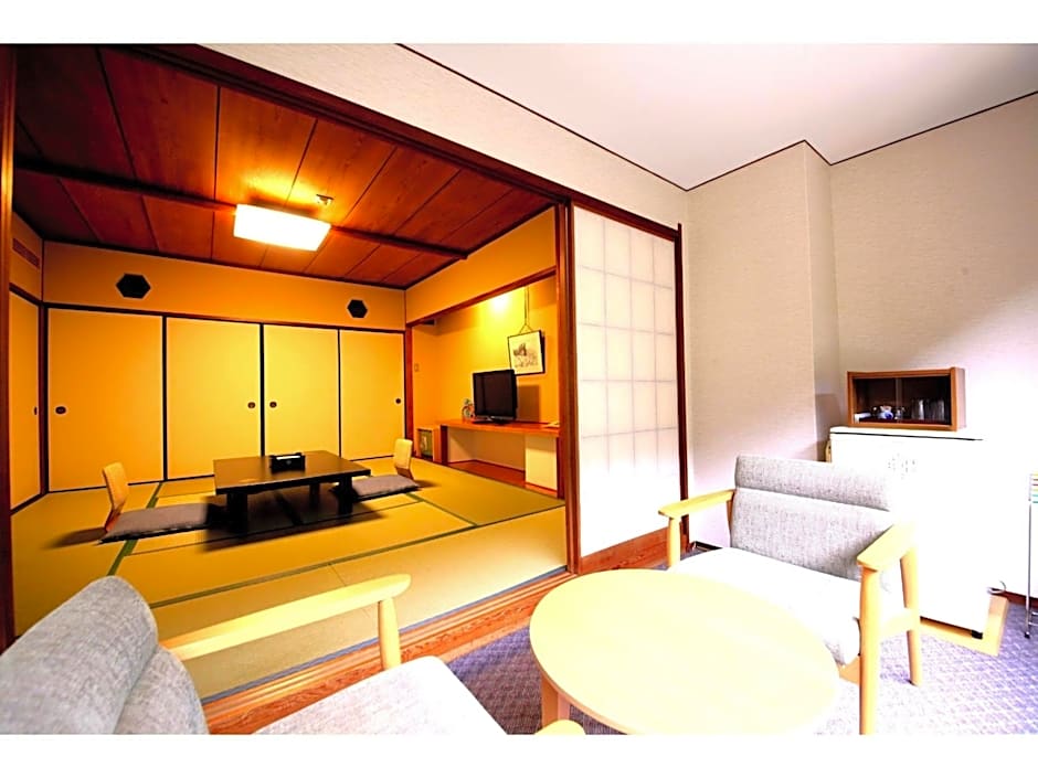 Guests will have a special experience as the quadruple room provides a private open-air bath. The quadruple room includes a private bathroom, well-fitted with a bath, a shower, a bidet, a hairdryer and slippers. This quadruple room is air-conditioned and features a flat-screen TV, tatami, a tea and coffee maker and yukata. The unit offers 4 futons.