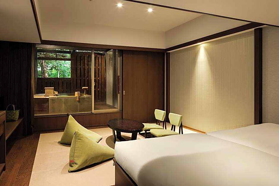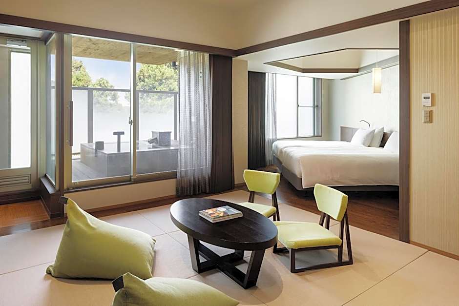 Features a private open-air hot spring bath, Western beds and a tatami (woven-straw) area. 3rd and 4th guests will sleep on futon mattresses. The rooms come with a flat-screen TV and air conditioning. A fridge and an electric kettle are also included. The private bathroom has a bath tub and a hairdryer.