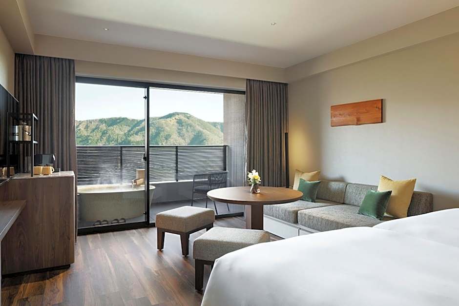 Guest amenities include a Restaurant, free private parking, free Wi‑Fi, and a free shuttle service. A free hot spring bath, a terrace with mountain views, and non-smoking rooms that are wheelchair accessible — plus an elevator — round out the comfort. Other thoughtful touches include a balcony, bidet, bathtub, and free toiletries; meeting/banquet facilities and a golf course are available for an extra charge, and kids’ meals are offered for an extra fee.