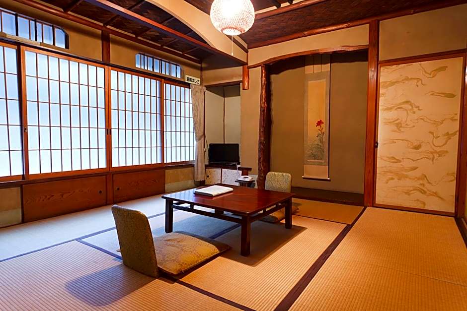 Features tatami (woven-straw) flooring and Japanese futon bedding. Air-conditioned room with river views, a fridge and a TV. Bathrooms and toilets are shared.