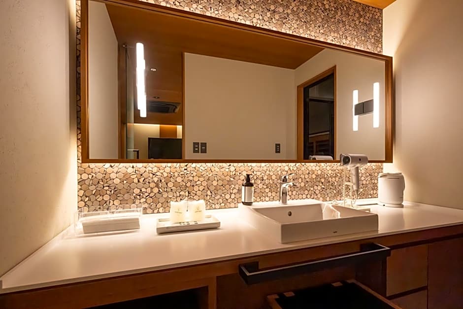 We stayed here during a rainy spell, and honestly, the weather only made the experience more magical. The hotel’s garden is absolutely stunning—tranquil, beautifully designed, and truly one of the highlights of our visit. Even just walking through it in the rain felt like stepping into a Studio Ghibli scene. It was also our first time trying an onsen, which was a bit intimidating as a foreigner. I was nervous about making a faux pas. I’d really recommend the hotel staff consider asking international guests about their onsen experience and maybe include a short etiquette guide or explanation in the welcome brochure. That small addition would make a big difference! A lovely touch was the Japanese-style clothing set provided by the hotel; it was so comfortable and made the whole experience feel extra special. We booked with dinner and breakfast included, and it was so worth it. The food was absolutely delicious, beautifully presented, and the dining setting was lovely. The location was also super convenient: there’s a bus stop right across the street, which made it really easy to explore the area.