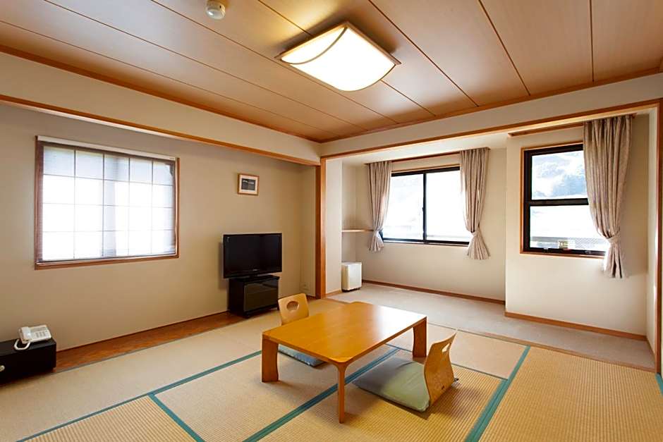 Quiet and charming facilities right next to Iwatake Snow Field gondola. Delicious breakfast buffet. Kind and helpful staff; even with limited English, they were always very accommodating of our requests. Nice onsen facilities including an outdoor heated pool. Japanese style family room was very spacious with beautiful views of the mountain. Would stay here again!