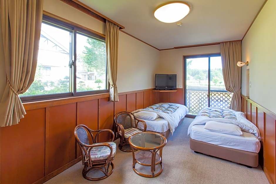 The quadruple room features air conditioning, tatami, as well as a private bathroom boasting a bath and a shower. The quadruple room features a flat-screen TV, a safe deposit box, an electric kettle, as well as heating. The unit has 6 futons.