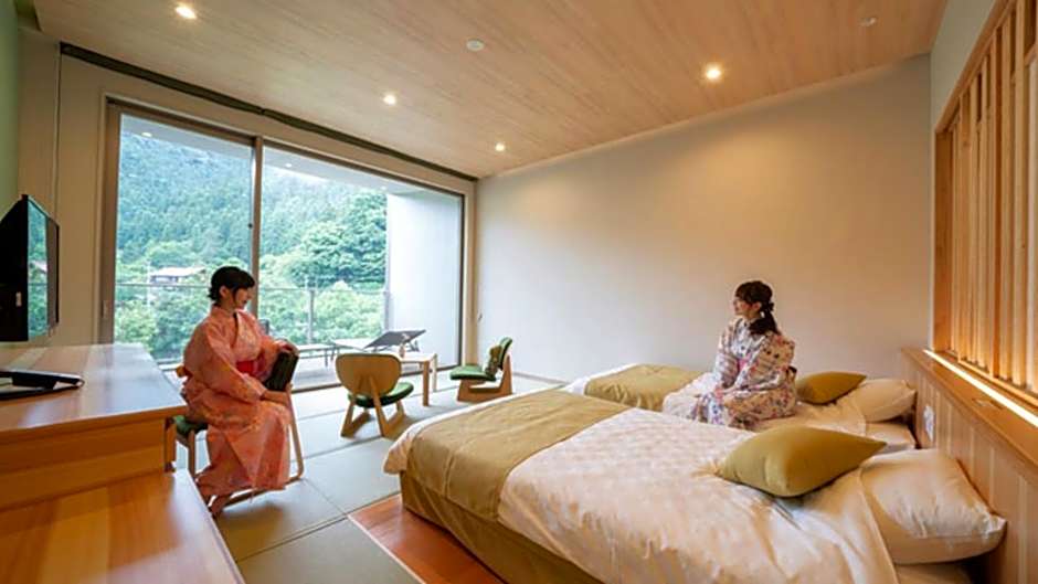 The air-conditioned family room provides a TV, a safe deposit box, yukata and heating.