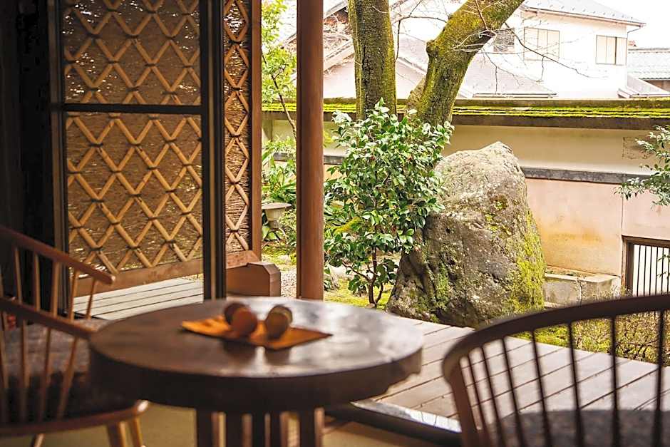 This suite has a private traditional Irori fireplace, private bath and a separate tatami (woven-straw) area. Includes a seating area with garden views. Flat-screen TV, safe, fridge and an electric kettle. Free toiletries are also provided.