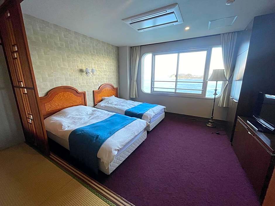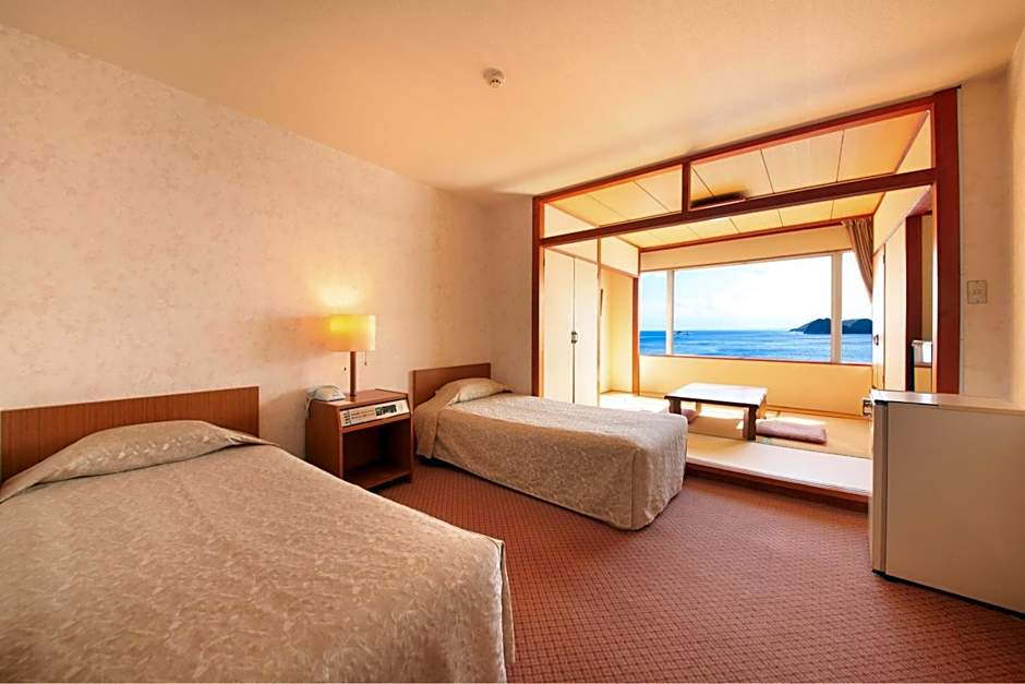 This twin room provides a hot tub. The twin room includes a private bathroom, well-fitted with a bath, a shower, a bidet, a hairdryer and slippers. The air-conditioned twin room offers a flat-screen TV, tatami, a wardrobe, a safe deposit box as well as sea views. The unit has 2 beds.