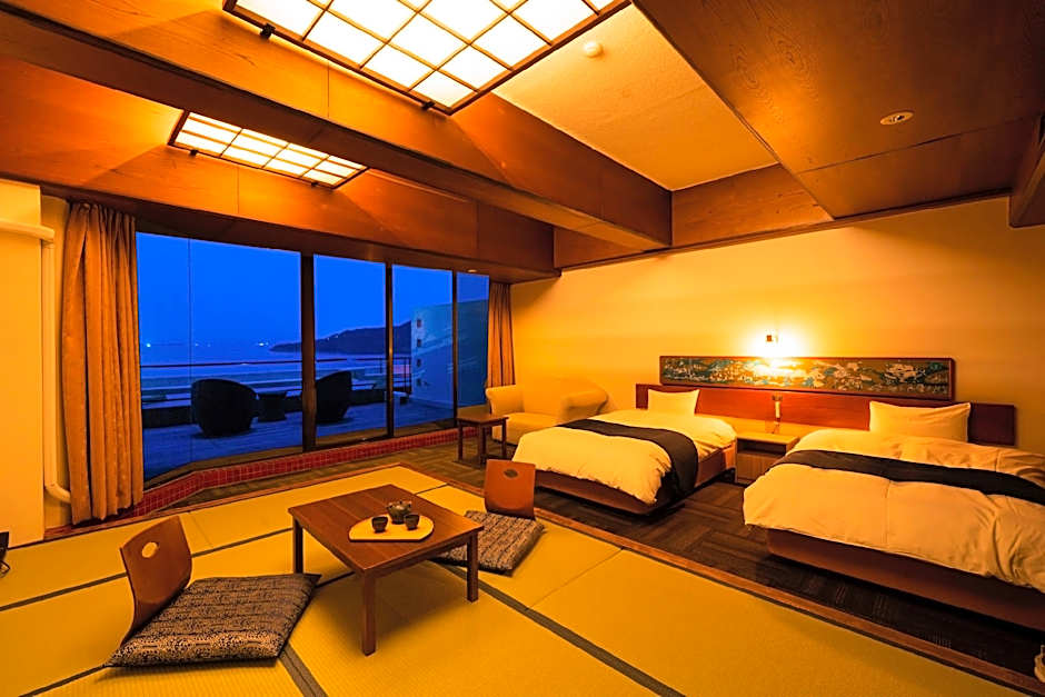 Offering free toiletries, this twin room includes a private bathroom with a bath, a shower and slippers. The air-conditioned twin room offers a flat-screen TV, an electric kettle, yukata, heating as well as sea views. The unit has 2 beds.
