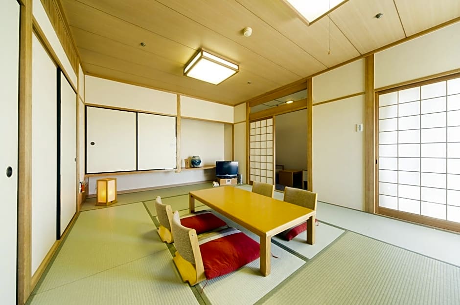 The quadruple room includes a private bathroom, well-fitted with a bath, a shower, a bidet, a hairdryer and slippers. The air-conditioned quadruple room offers a flat-screen TV with satellite channels, tatami, an electric kettle and yukata. The unit has 4 beds.