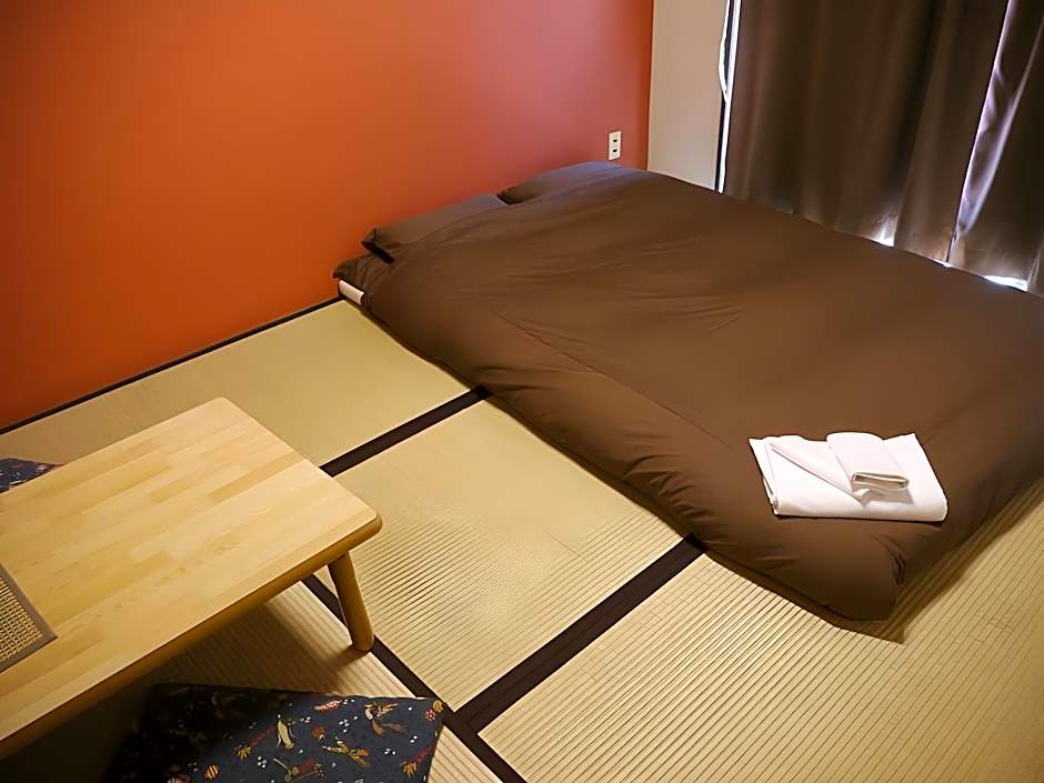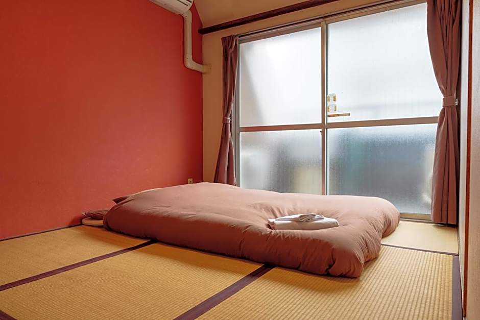 Features tatami (woven-straw) flooring and 1 large Japanese futon mattress in a private air-conditioned room with free Wi-Fi. Bathrooms and toilets are shared. Towels can be rented.