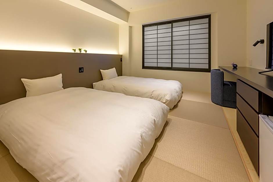 The quadruple room includes a private bathroom, well-fitted with a bath, a shower, a bidet, a hairdryer and slippers. The air-conditioned quadruple room offers a flat-screen TV with satellite channels, tatami, a wardrobe and an electric kettle. The unit has 2 beds and 2 futons.