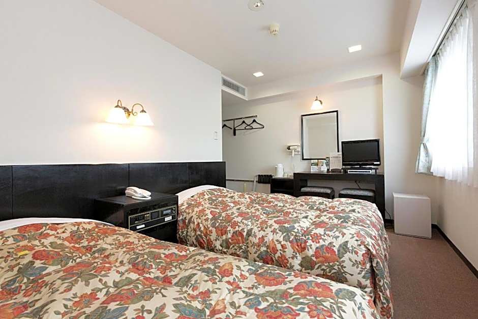 The twin room offers air conditioning, an electric kettle, yukata, heating and a flat-screen TV. The unit has 2 beds.