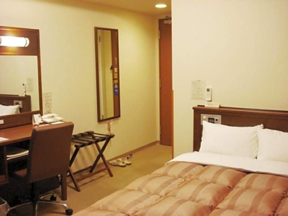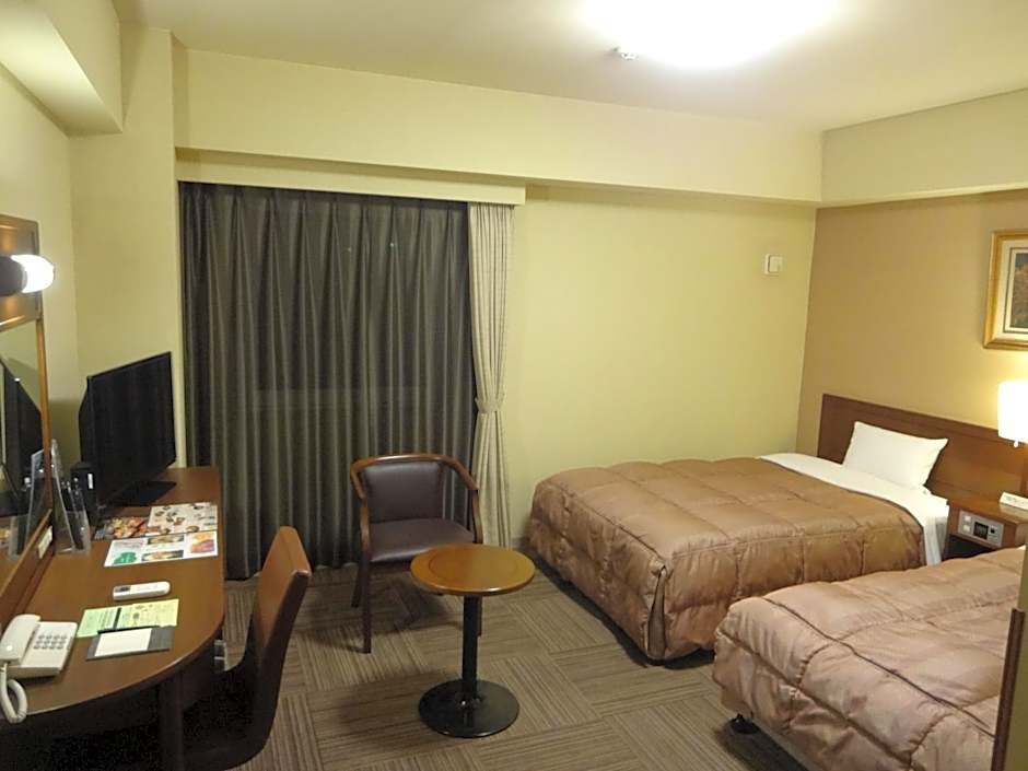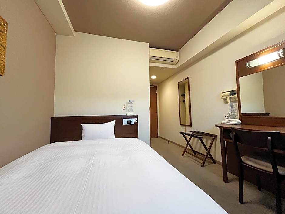 The Hotel Route-Inn Hofu Ekimae offers various types of rooms. These include twin rooms, double rooms with small double beds, and single rooms. The rooms come in both smoking and non-smoking options. The twin rooms and double rooms have two beds, while the single rooms have one bed. The room sizes range from 118 sqft to 161 sqft.
