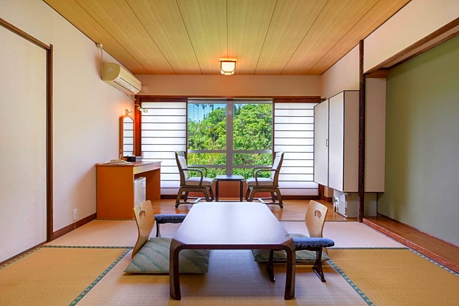 I had a room with an ocean view, which was very nice. You could hear the sound of the waves, which was nice and relaxing. The main room was a large 12-mat tatami room and there was also a western-style couch with drink holders. A big closet with lots of hangers. There is a big bathhouse and a jacuzzi available to use, as well as sand-bathing for ¥1,200. There is a very good buffet breakfast in a room overlooking the ocean. Very good value for the money.