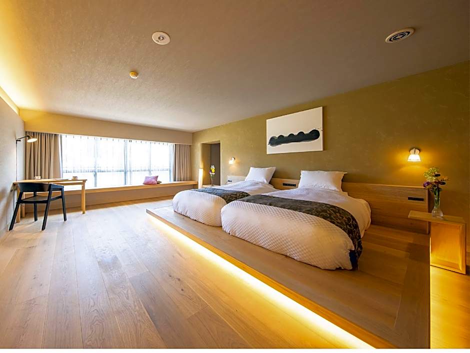 The twin room includes a private bathroom, well-fitted with a bath, a shower, a bidet, a hairdryer and slippers. The air-conditioned twin room provides a flat-screen TV with streaming services, an electric kettle, yukata, heating as well as garden views. The unit offers 2 beds.