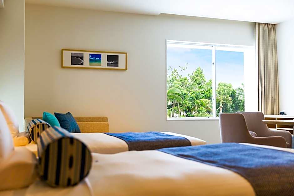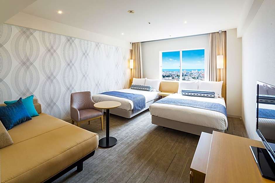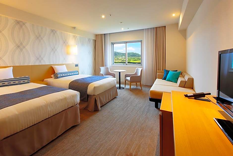 We stayed for 7 nights. This hotel is new and clean. The pool, onsen, sauna, breakfast, especially staffs. There is a bus station right at the entrance so it’s convenient to go around, the also have free shuttle bus to Fusaki beach. The reception lady is always helpful, the pool boy is nice to our kids, we are always the last ones to leave, he didn’t say time to close instead he said you can enjoy the last time of the slide😬so touching! And thanks to Mr. Muramatsu, always around to help and give us good tips. We wish to stay more days!