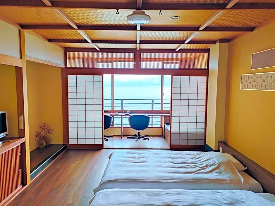 The spacious quadruple room features air conditioning, tatami, as well as a private bathroom boasting a walk-in shower and a bath. The quadruple room offers a dining area, a wardrobe, a safe deposit box, a flat-screen TV, as well as sea views. The unit has 5 futons.