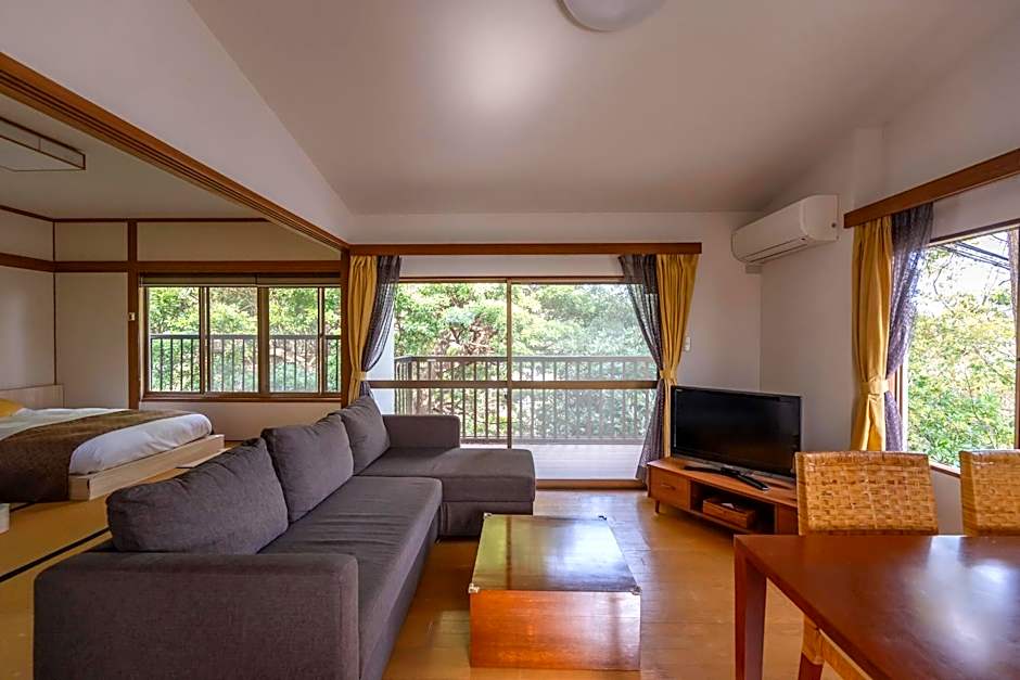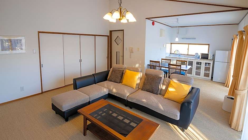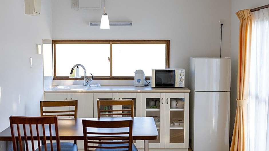 Featuring a private entrance, this air-conditioned bungalow consists of 1 living room, 2 separate bedrooms and 1 bathroom with a bath and a shower. Guests will find a stovetop, a refrigerator, kitchenware and a microwave in the kitchen. The bungalow also provides guests with a barbecue. The spacious bungalow provides tatami, soundproof walls, a seating area as well as a terrace with garden views. The unit offers 2 beds and 4 futons.