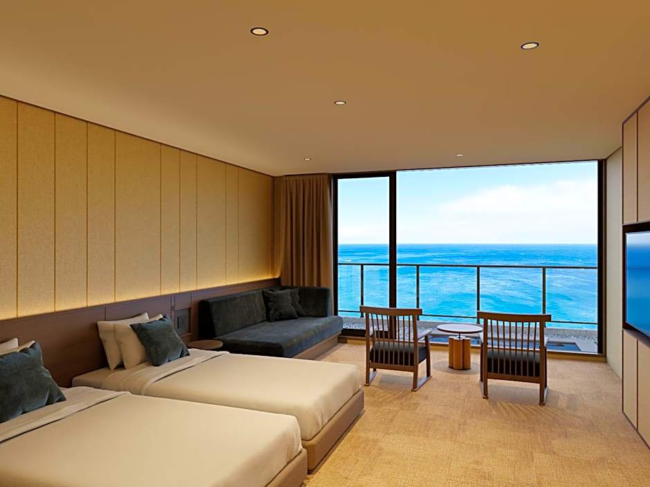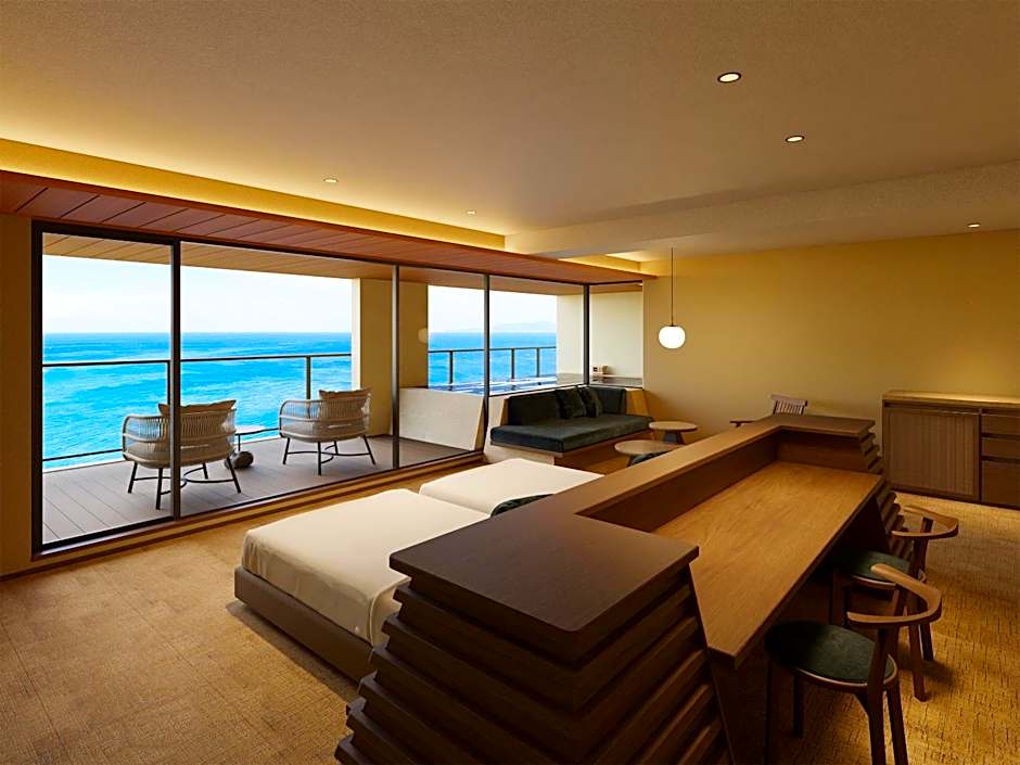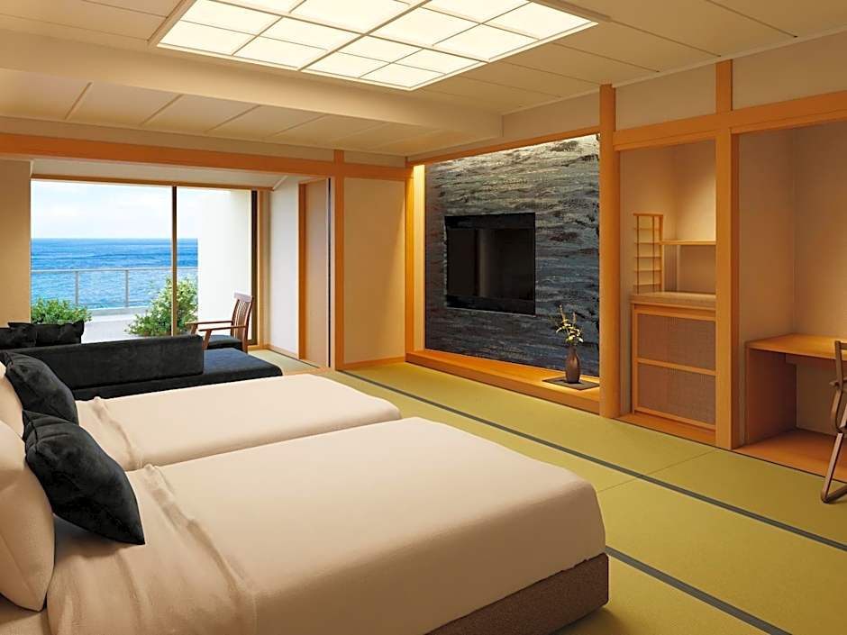 Guests will have a special experience as this twin room provides a hot tub, a private open-air bath and a spa bath. The spacious twin room offers air conditioning, soundproof walls, a terrace with sea views as well as a private bathroom featuring a shower. The unit offers 2 beds.