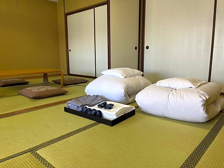 The spacious quadruple room features air conditioning, tatami, as well as a private bathroom boasting a bath and a shower. The quadruple room provides a flat-screen TV, soundproof walls, a wardrobe, a safe deposit box as well as mountain views. The unit has 6 futons.