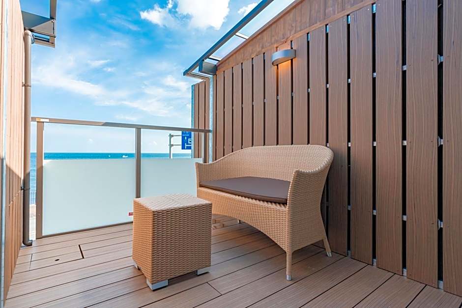 The spacious quadruple room provides air conditioning, a tea and coffee maker, a terrace with sea views as well as a private bathroom featuring a bath. The unit offers 2 beds and 2 futons.