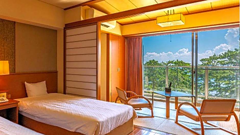 My friends and I stayed in a Japanese style room. The room was cozy and clean. We had a great view of the ocean and lots of greenery. The futon was so comfortable and I slept like a baby. The onsen and breakfast and dinner were also very wonderful!