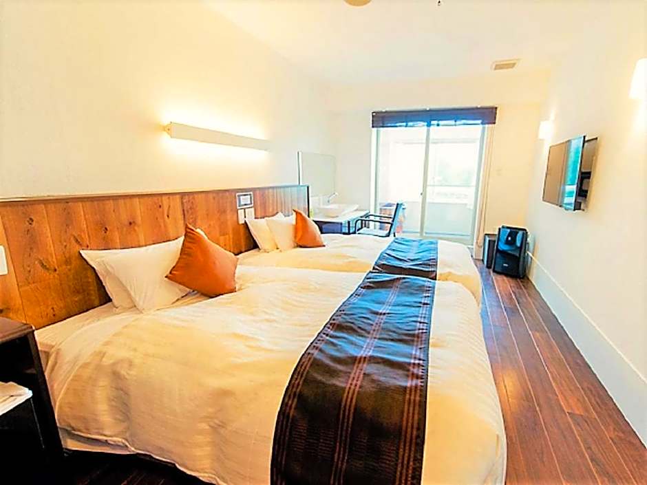 Guests will have a special experience as this twin room provides a private open-air bath. Offering free toiletries and bathrobes, this twin room includes a private bathroom with a shower, a bidet and a hairdryer. Featuring a terrace, this twin room also offers air conditioning, a tea and coffee maker and a TV. The unit offers 2 beds.