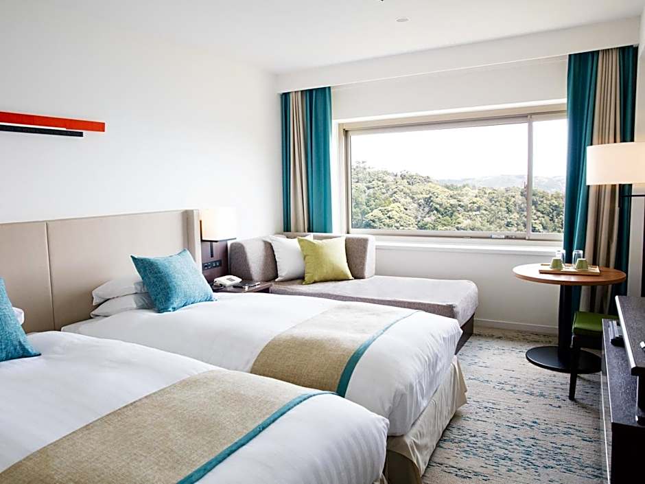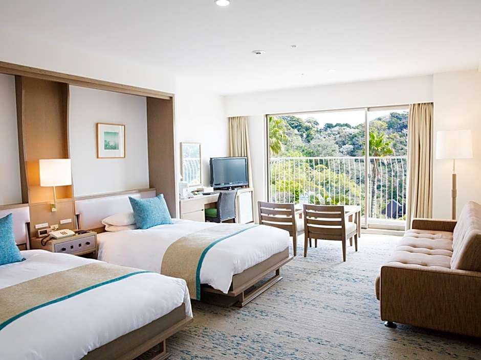 The Shimoda Tokyu Hotel offers a variety of rooms including Standard Japanese Rooms, Ocean View Rooms, and Suites. Occupancy ranges from 2 to 4 guests per room. Bed sizes include twin, double, and sofa beds, and room sizes vary depending on the room type. Smoking is allowed in some rooms.