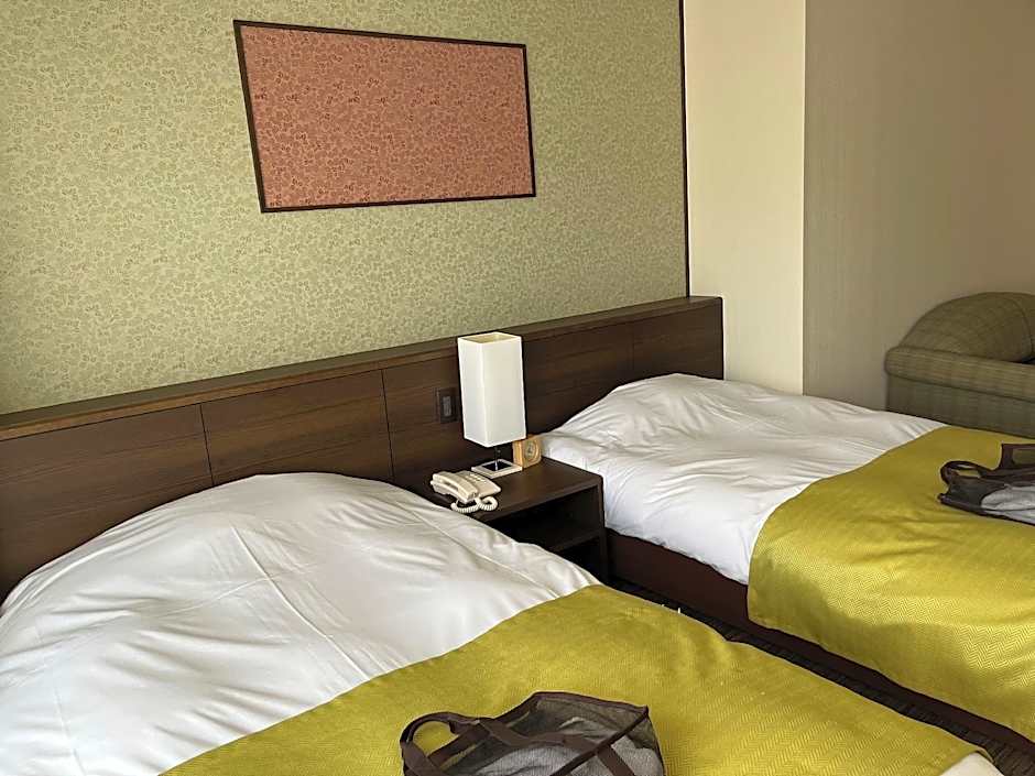 The hotel offers a variety of room types including Double Rooms, Japanese-Style Rooms, and Standard Twin Rooms. The Double Rooms accommodate 2 adults and have a twin bed, while the Japanese-Style Rooms can accommodate 4-5 adults with twin beds. The Standard Twin Rooms also accommodate 2 adults with twin beds. All of these rooms do not allow smoking.