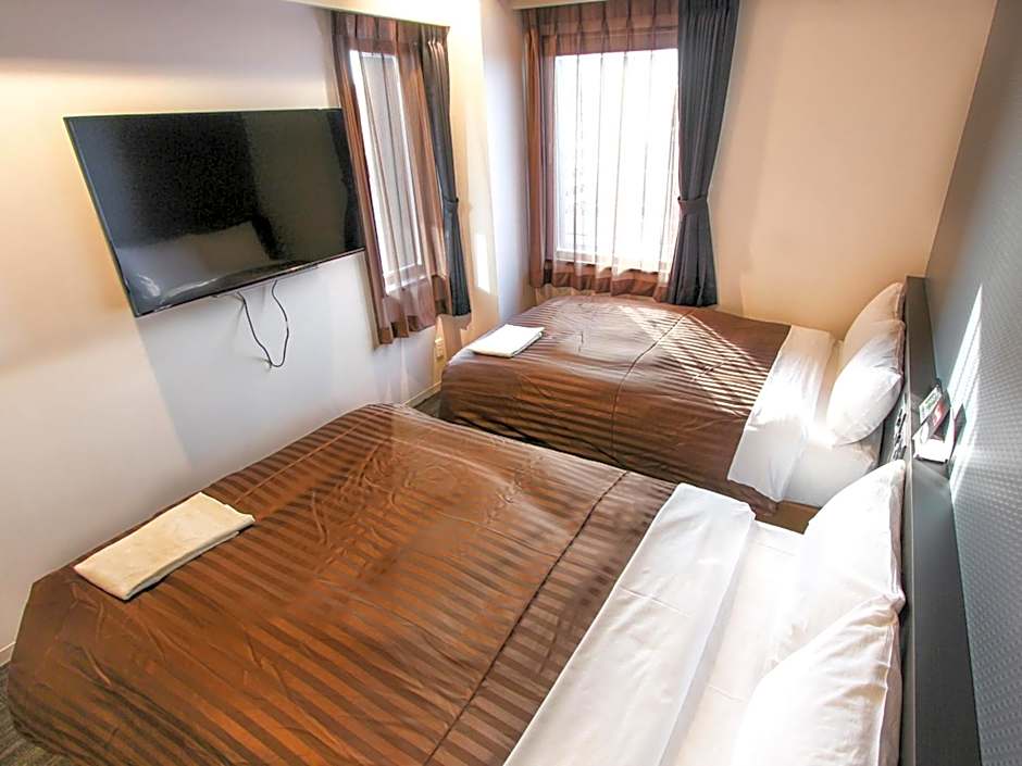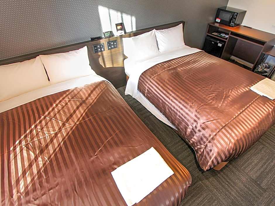 Hotel Livemax Osaka Kadoma offers various types of rooms including double rooms with small double beds and twin rooms. The rooms are available in both smoking and non-smoking options. The room sizes range from 108 sqft for the double rooms to 172 sqft for the twin rooms. The occupancy for the rooms varies, accommodating either 2 adults and 1 child or 4 adults and 2 children. All rooms feature twin beds.