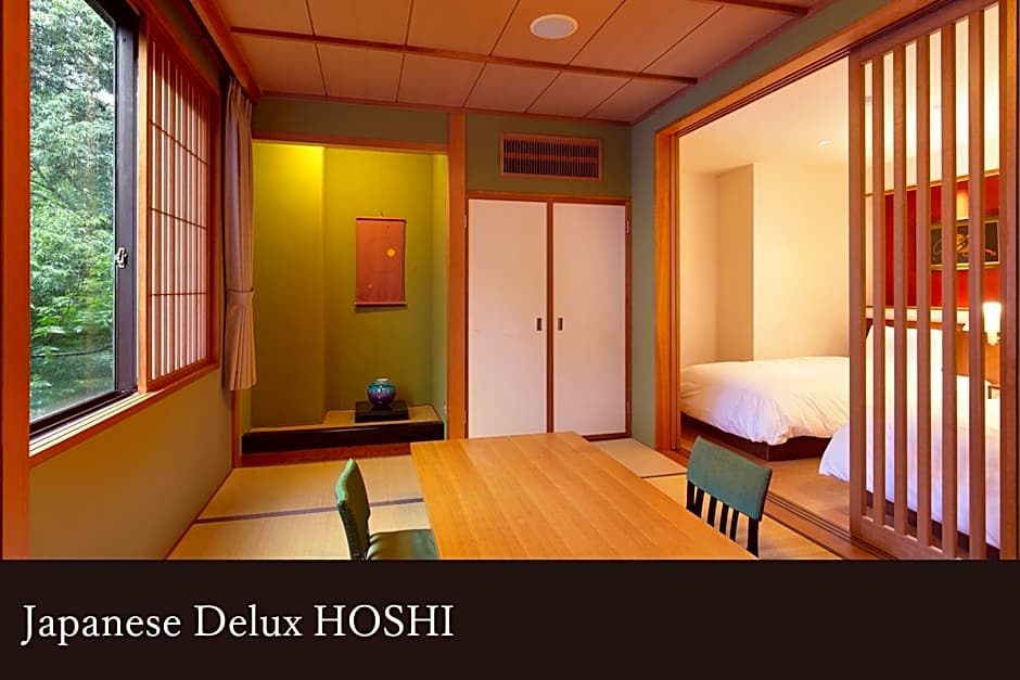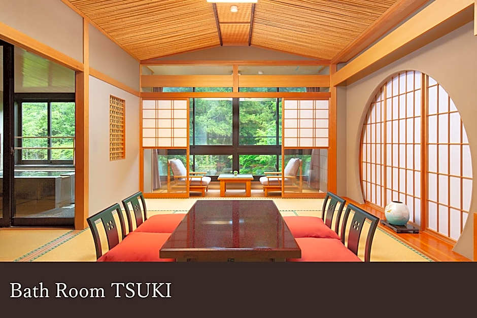 A diverse lineup of rooms includes river-view options such as Japanese Style, River View, Private Bathroom, along with other Japanese and Western-inspired styles. The variety allows guests to pick a setup that fits their preferences, from compact settings for two to more expansive configurations, all designed to complement the tranquil onsen atmosphere.