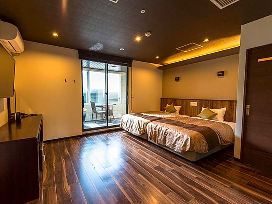 Guests will have a special experience as this twin room offers a hot tub and a private open-air bath. Providing free toiletries and bathrobes, this twin room includes a private bathroom with a bath, a shower and a bidet. The spacious air-conditioned twin room provides a flat-screen TV, a tea and coffee maker, a seating area, a wardrobe as well as pool views. The unit offers 2 beds.