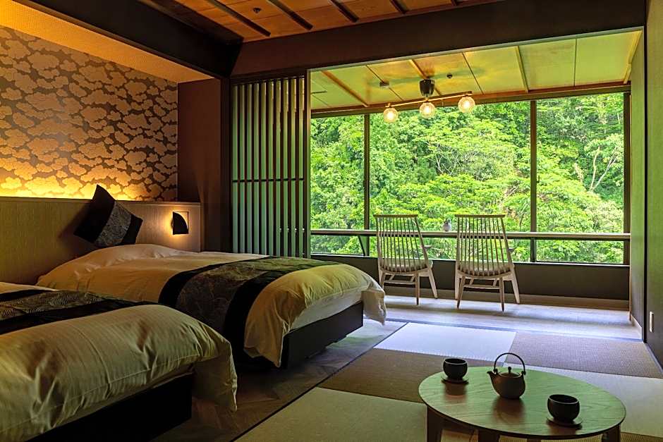 Guests will have a special experience as this suite provides a private open-air bath. This spacious suite is consisted of of 1 living room, 1 separate bedroom and 1 bathroom with a bath and free toiletries. The air-conditioned suite offers a flat-screen TV, a seating area, a wardrobe, a safe deposit box as well as mountain views. The unit offers 3 beds and 3 futons.