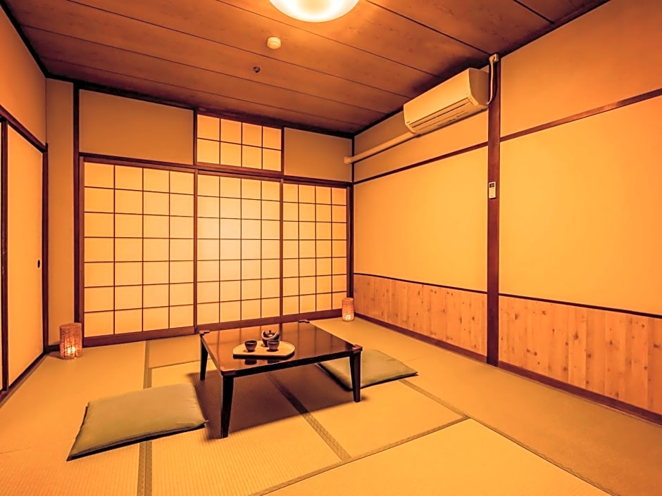 The spacious family room features air conditioning, tatami, as well as a private bathroom boasting a bath and a shower. The unit has 10 futons.