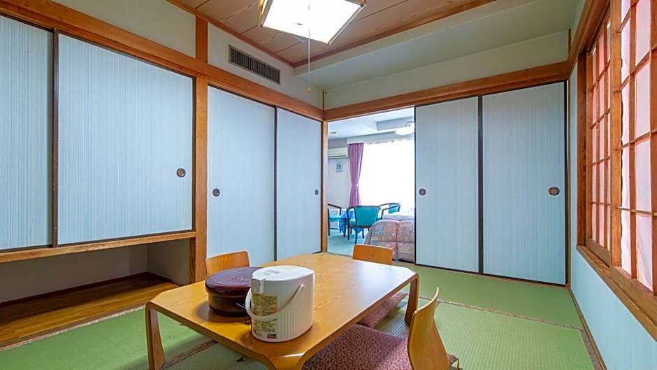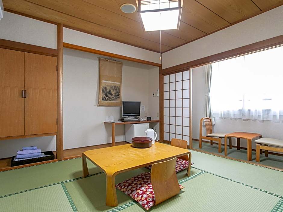 The quadruple room features air conditioning, tatami, as well as a private bathroom boasting a bath and a shower. This quadruple room has an electric kettle, yukata and a flat-screen TV. The unit has 4 futons.