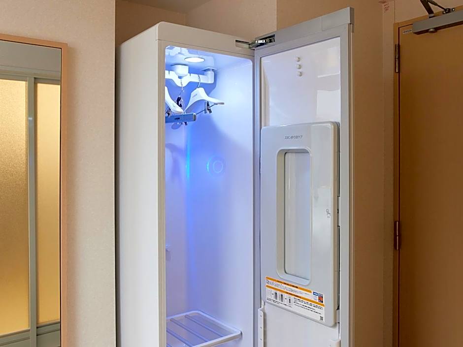 A lot of the amenities are automated. You can perform pre-check in procedures online so it will be quick when you get to the hotel. The check in area is cool; animated characters will show up to greet you and will adjust their language depending on your selected language on the check in panel. The room we got is spacious and has an LG Styler to clean your clothes, which greatly reduced our laundry needs. The hotel is located in Tenmonkan, which is a district in Kagoshima that has a lot of stores and restaurants, perfect for travel. The hotel breakfast is a traditional Japanese Teishoku (set meal) which is very delicious. The selection is limited to 4 and very light. Lastly, when checking out, they have a self storage area where you can place your small bags in cabinets and tie your suitcases with card-activated locking mechanism. Very convenient.