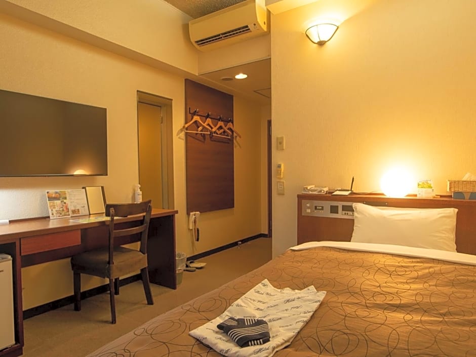 Room features a semi-double bed (47 in wide). Guestrooms offer both air-conditioning and heating facilities. Each room is equipped with a Yukata robe, an electric kettle and a flat-screen TV. The private bathroom has a bathtub and toiletires. Includes free Wi-Fi access.