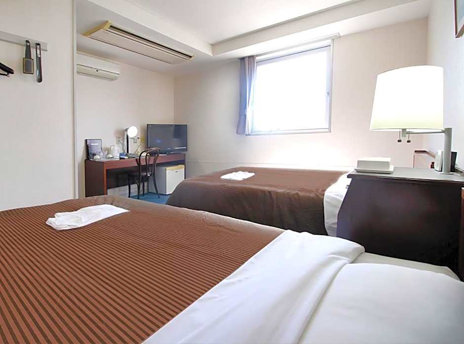 Address: No. 2-12, Ekimae. Amenities include free WiFi, air conditioning, and an elevator with access to upper floors, along with non-smoking rooms, free toiletries, and a bathtub. On-site parking options are available for an extra charge: private parking as well as parking on site.