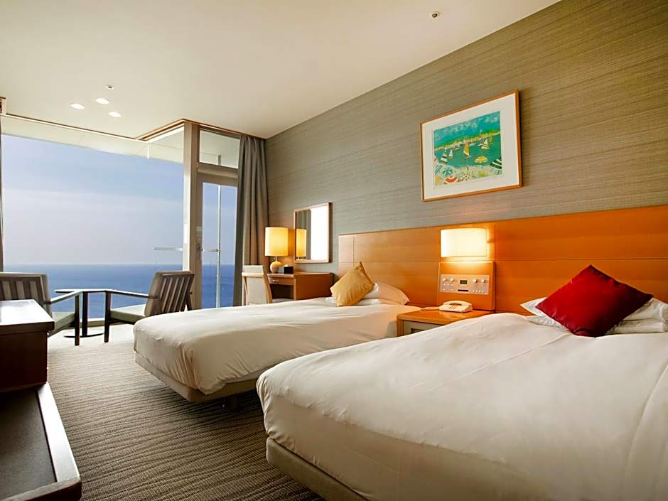 Twin Room A -Mt.Fuji & Enoshima View- For 2 PAX is 355 square feet and includes 2 single beds 80-130 width plus balcony, satellite tv , and safe.