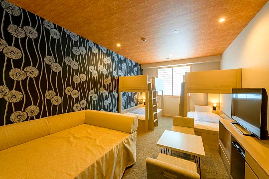 Featuring free toiletries, this quadruple room includes a private bathroom with a bath, a bidet and a hairdryer. This quadruple room is air-conditioned and has a flat-screen TV, an electric kettle and yukata. The unit has 2 beds.