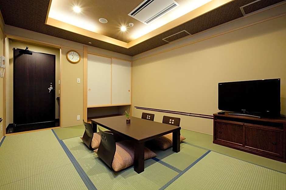 This twin room features a flat-screen TV, seating area and air conditioning. This room features tatami (woven-straw) flooring and Japanese futon bedding. Free toiletries are provided.