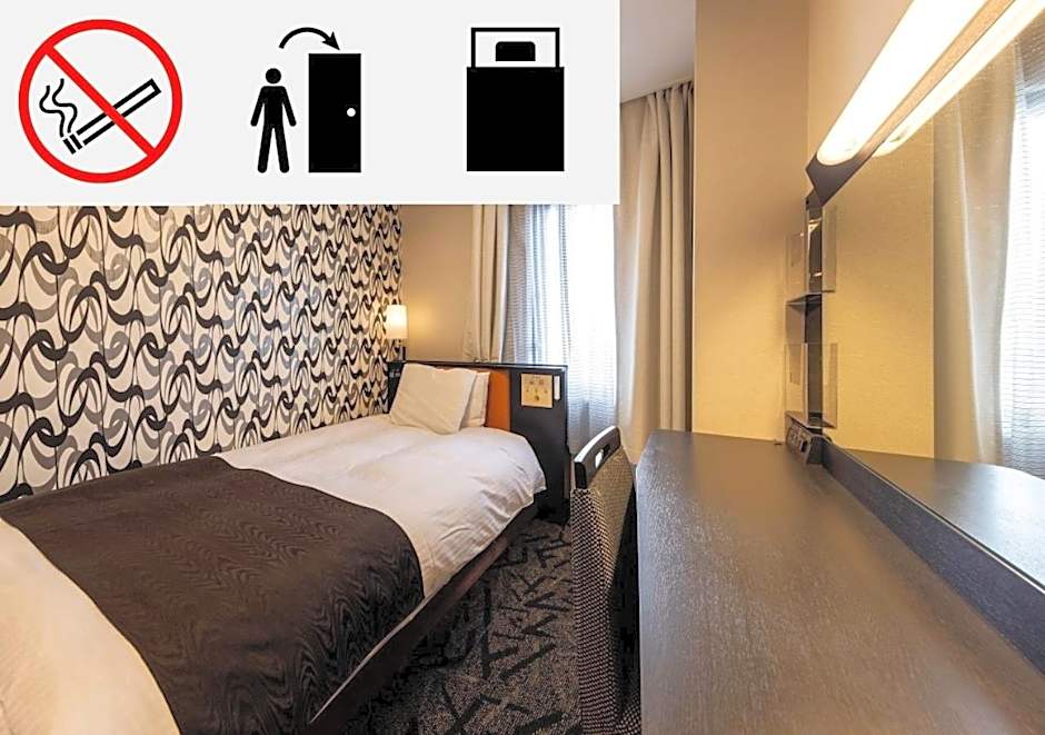 Features a semi-double bed (47 in wide). Air-conditioned room with a wood desk, a fridge and an electric kettle with green tea. You can soak in the private bathtub or try on the Yukata robe. Video-on-demand movies are available for purchase.