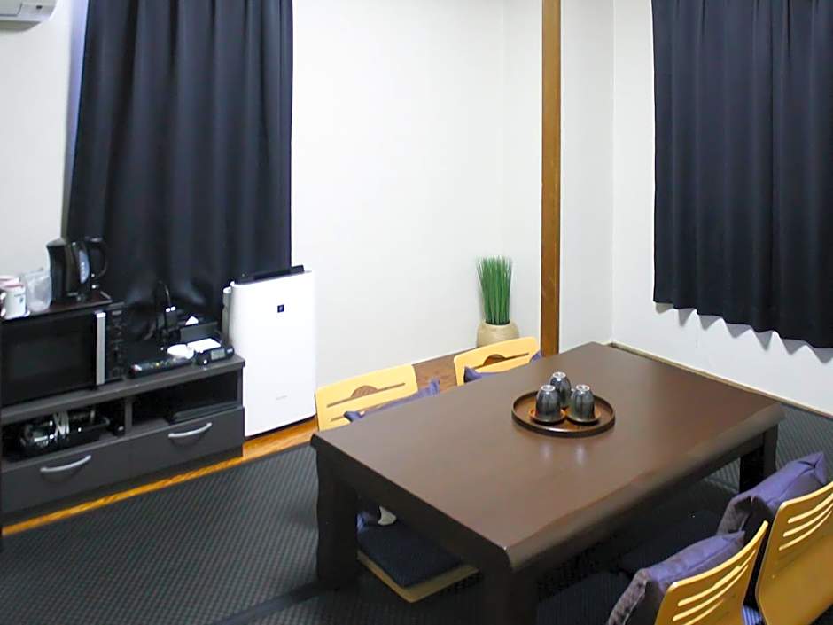 The family room includes a private bathroom, well-fitted with a bath, a shower, a bidet, a hairdryer and slippers. The family room features air conditioning, tatami, an electric kettle, a carpeted floor, as well as a flat-screen TV. The unit has 3 futons.