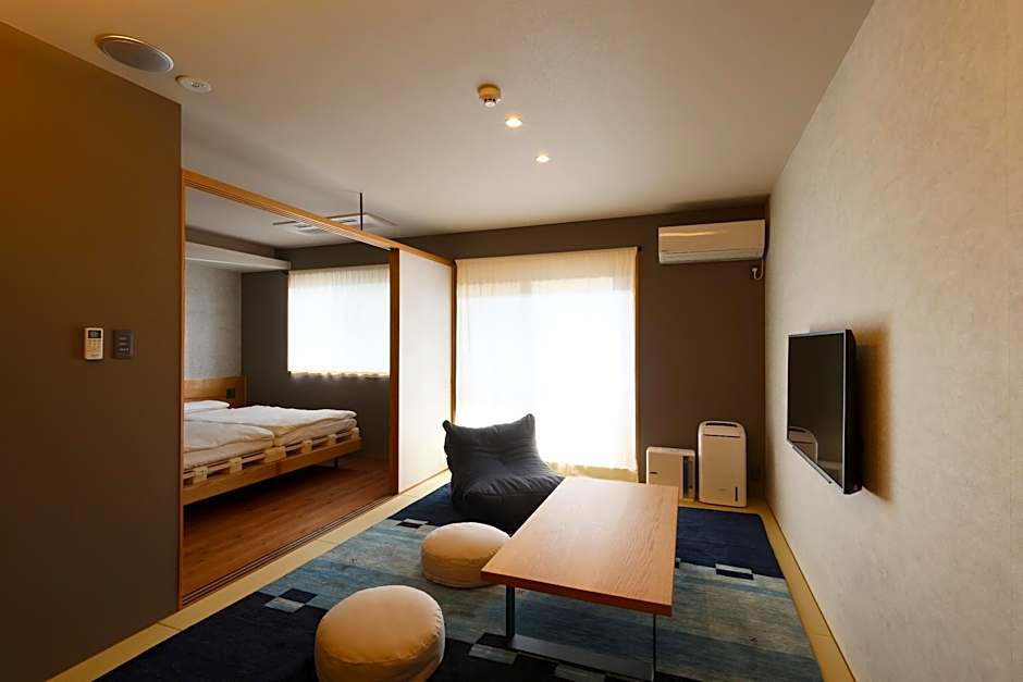 The spacious family room provides air conditioning, a washing machine, as well as a private bathroom featuring a bath and a shower. The fully equipped kitchen features a stovetop, a refrigerator, kitchenware and a microwave. The family room features tatami, a private entrance, a sofa, a tiled floor and a flat-screen TV. The unit offers 2 beds and 2 futons.