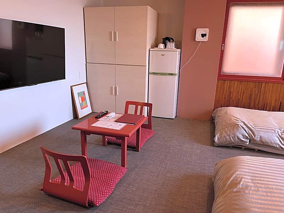 The quadruple room provides air conditioning, tatami, as well as a private bathroom featuring a bath and a shower. The quadruple room offers a wardrobe, an electric kettle, yukata, heating and a flat-screen TV. The unit offers 4 futons.
