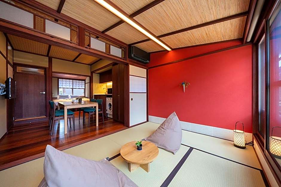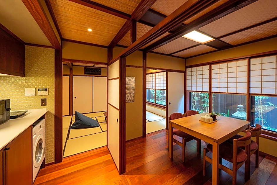 The quadruple room features air conditioning, a washing machine, as well as a private bathroom boasting a walk-in shower and a bath. Guests can make meals in the kitchen that features a stovetop, a refrigerator, kitchenware and a microwave. The quadruple room has tatami floors, a seating area with a TV, a tea and coffee maker, a dining area as well as a quiet street view. The unit has 1 bed and 2 futons.
