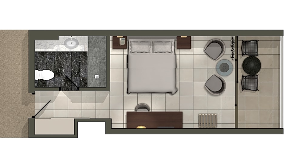 Accommodation options range from compact to expansive. The 517 sq ft Apartment and the 517 sq ft Apartment, Balcony sleep up to 6 adults and 4 children, with a Queen size bed, 2 Futon Mats, and a Sofa Bed in the standard layout, while the Balcony version pairs a Sofa Bed with two Double beds for flexible sleeping arrangements. For smaller parties, the Twin Room offers a single Twin bed, and the Double Room and Deluxe Double Room provide intimate options.